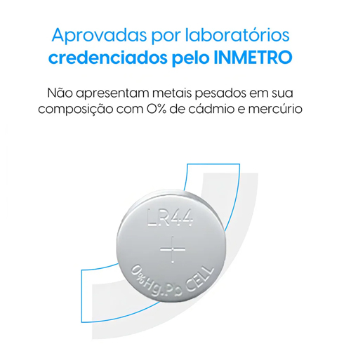 Modelo LR44 / A76 da marca Elgin, ideais para atender as necessidades de equipamentos que exigem descargas de energia rápidas e fortes, como lasers, lanternas, brinquedos, calculadoras e diversos dispositivos eletrônicos.