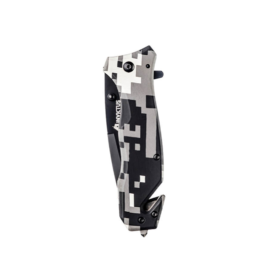 O canivete Phanton compõe o portfólio de canivetes táticos INVICTUS. Possui lâmina em aço inoxidável 420, de maior resistência a impactos e maior durabilidade, cabo em óxido de alumínio com camuflado digital urbano, clip tático, pomo metálico (quedra vidro), corta cinto no cabo e abertura fácil e rápida assistida por mola (spring assisted).