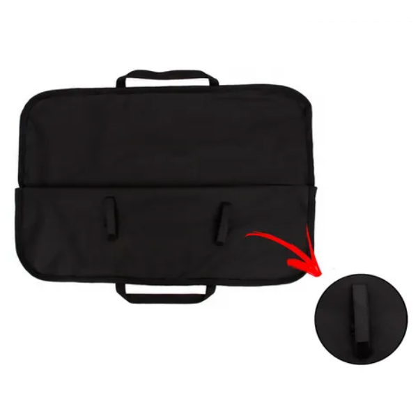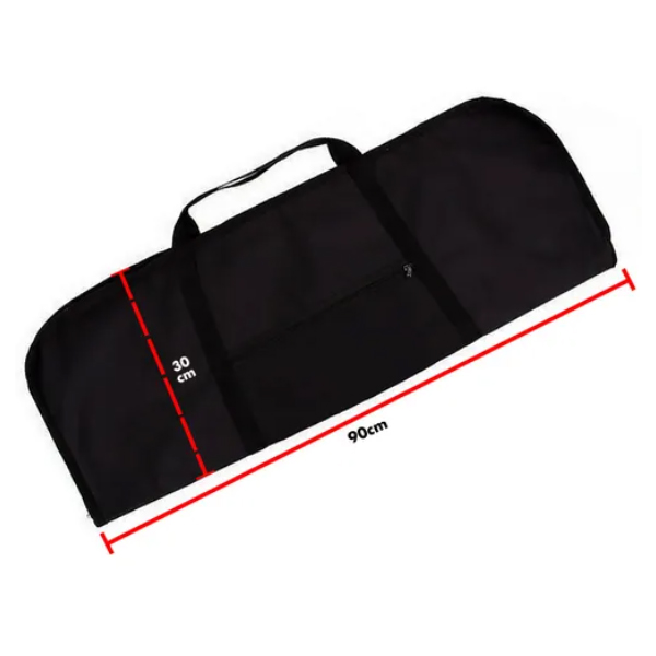 Além de possui costuras reforçadas conta com um bolso lateral para armazenamento de acessórios, uma alça de mão para facilitar a locomoção e uma alça interna com velcro, assim deixando sua arma mais firme e segura.
